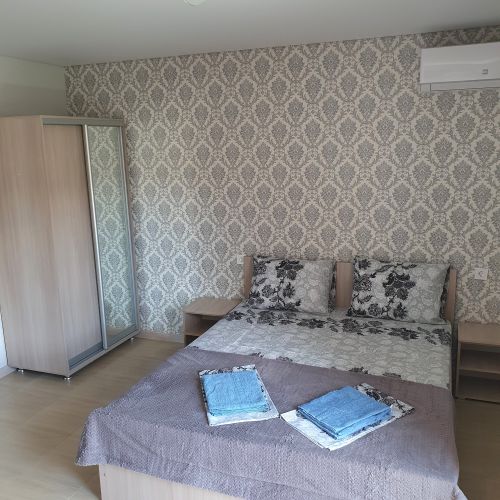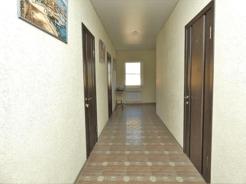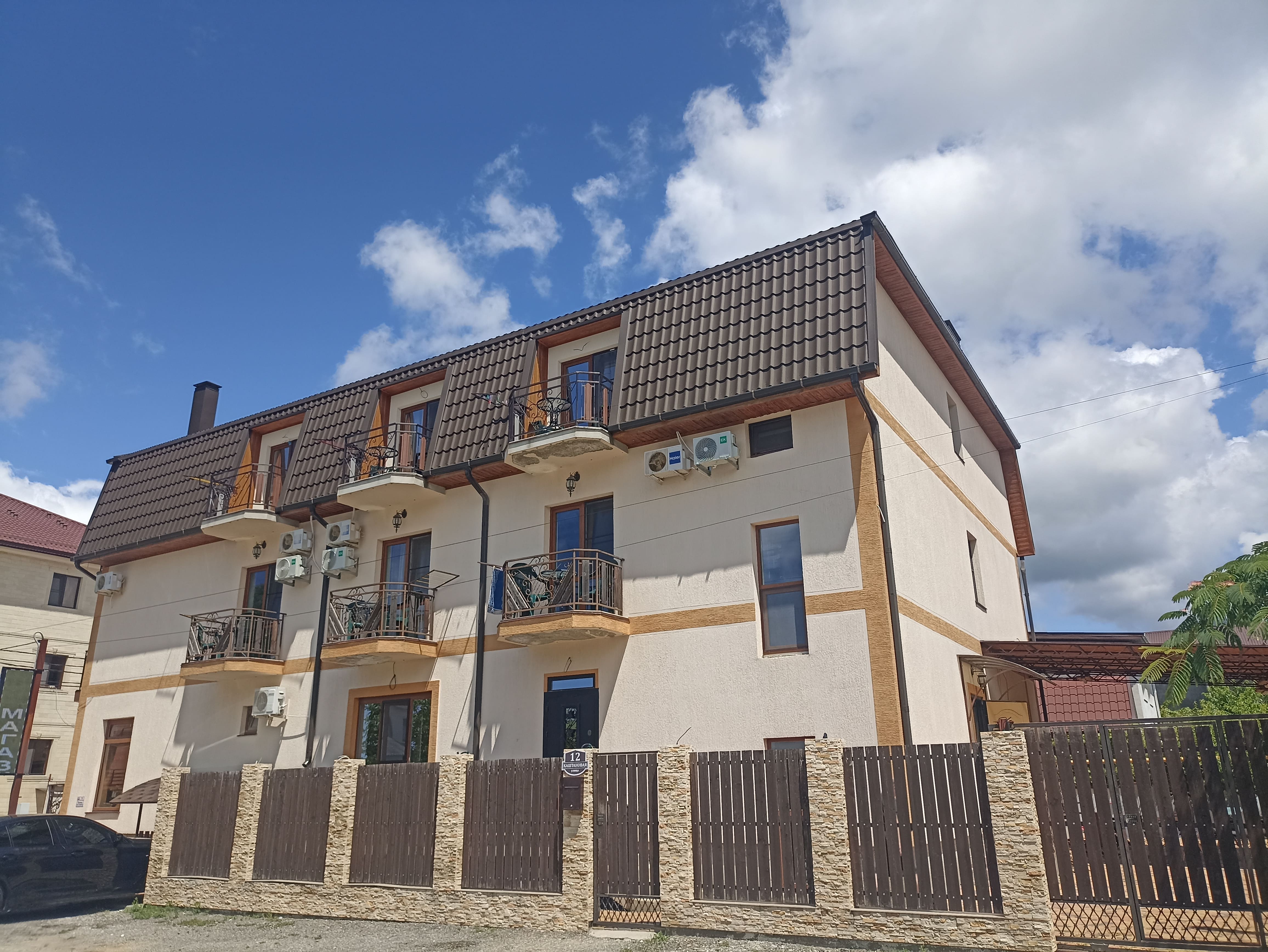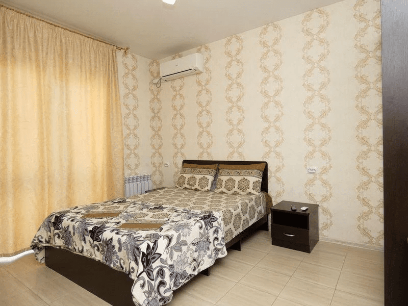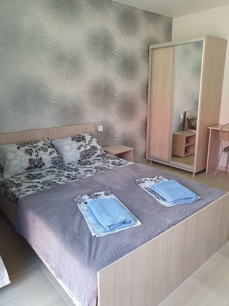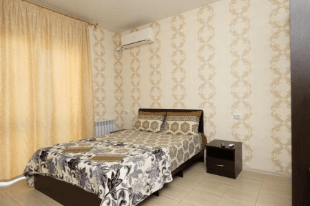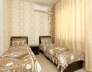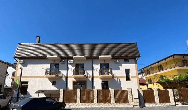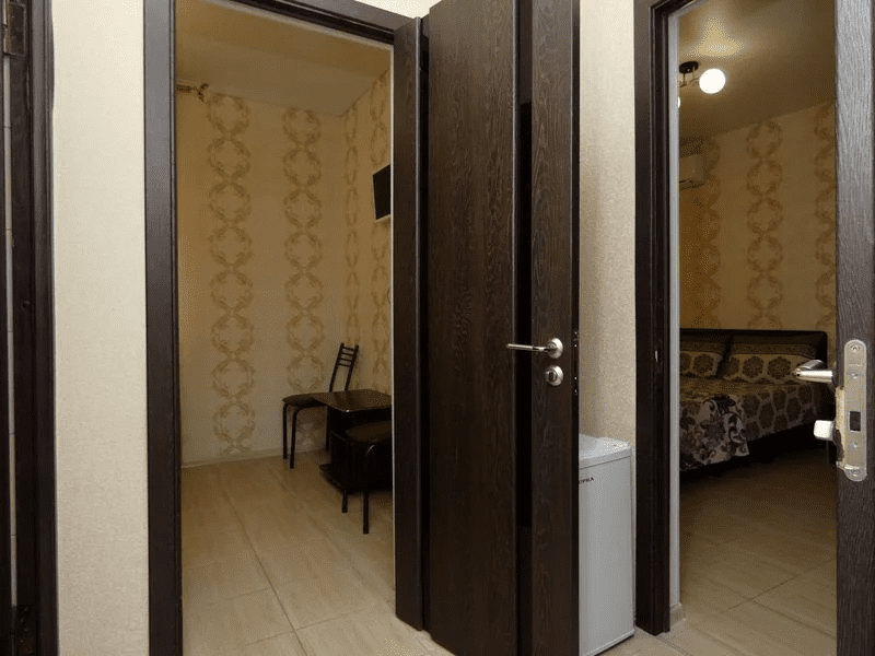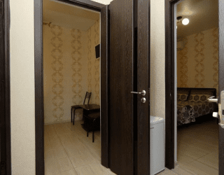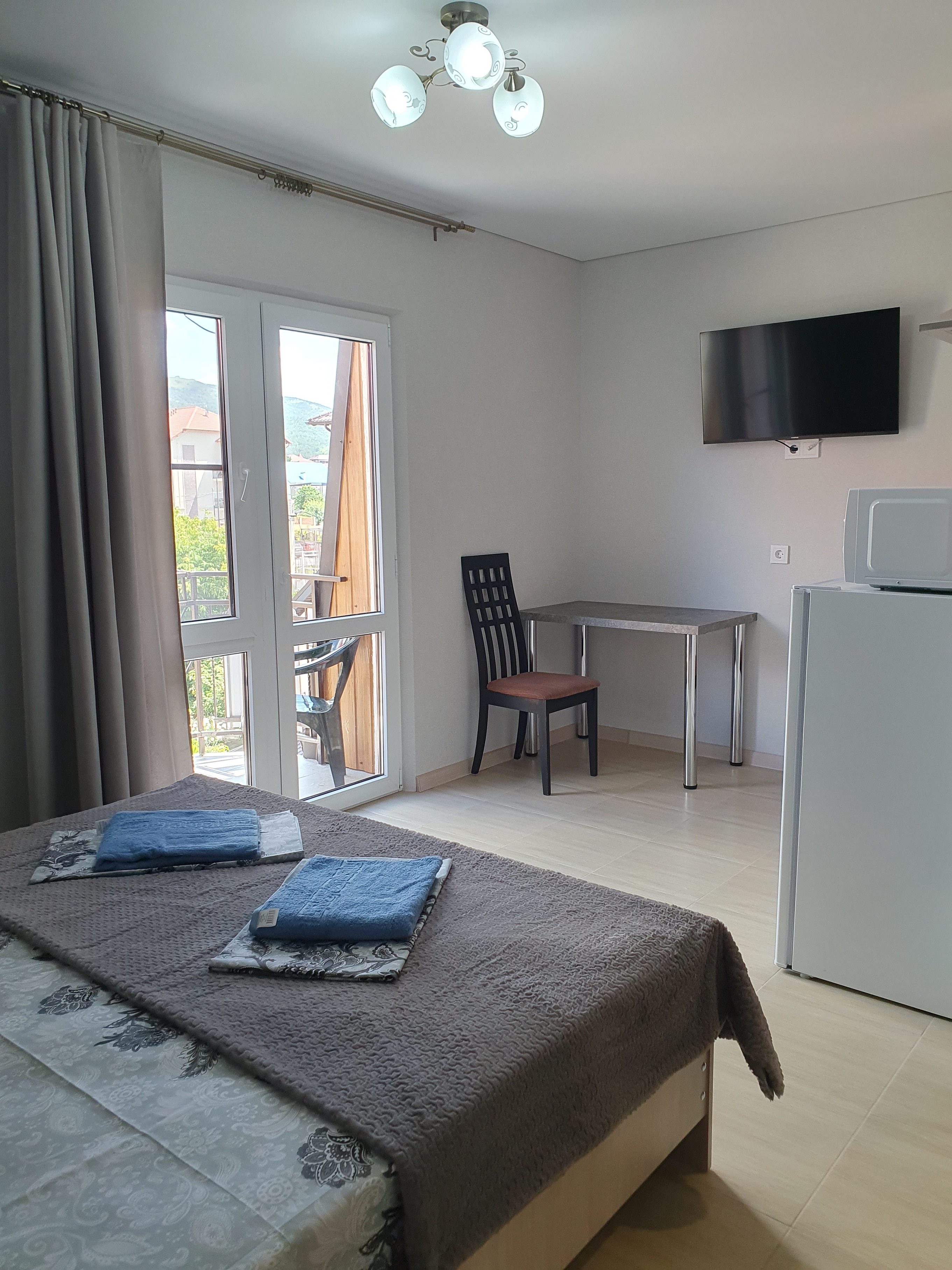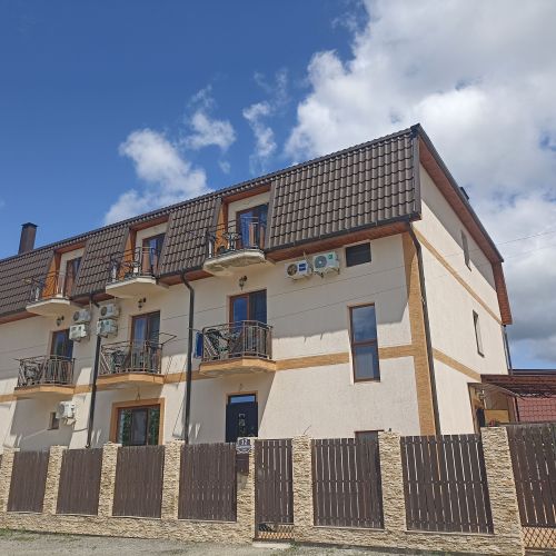 Новые просторные, оснащенные всем необходимым номера сделают отдых комфортным и приятным. В каждом номере есть комфортный спальный гарнитур, шкаф для одежды, кондиционер, телевизор, собственный санузел с душем, балкон. На этаже имеется общая кухня со всем необходимым для самостоятельного приготовления пищи, а также гладильная доска с утюгом и стиральная машина (за дополнительную плату). На территории расположе большой двор, под навесом зона отдыха, есть мангальная зона, а так же детская площадка. А приобрести необходимые продукты питания и промышленные товары можно в магазине на территории гостевого дома.